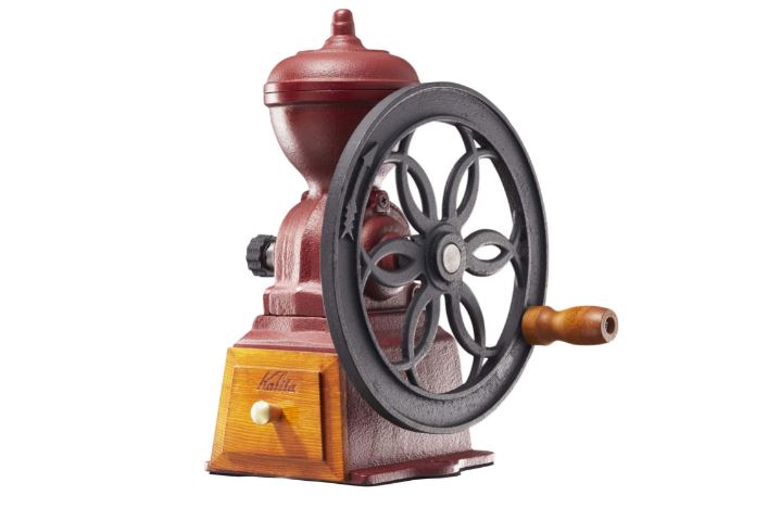モタエ(光浦靖子さん)が青山にコピルアクのコーヒーを淹れるときに使ったコーヒーミルは、カリタのダイヤミル・レッド。高さ約30cm、重さ約3kg。インテリアにも使える重厚感のあるアンティーク系ミルです。