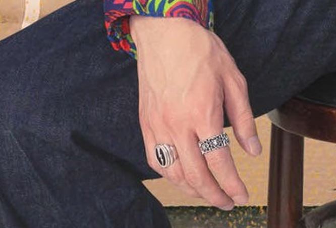 杉三平が薬指につけている稲妻柄のシルバーリングは、Lolo by TADYのサンダーリング・シルバーオニキス。芸能人御用達の人気ブランド・TADY&KING(タディアンドキング)が手掛けています。力強く激しい雷は、杉三平のキャラを表しているかのようです。一点一点が手作りのため、在庫切れの場合は2週間から1ヶ月かかります。