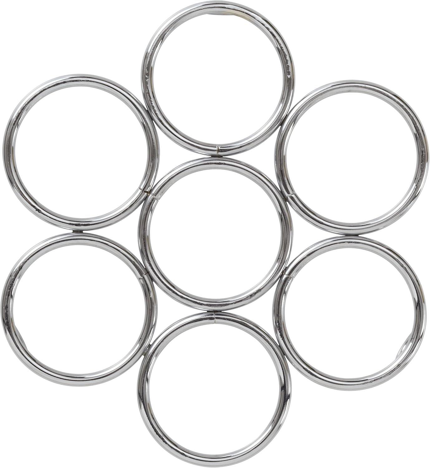 コイントレーの左側にある鍋敷き、キッチン雑貨ブランド・トルネのスチール鍋敷サークルフラワーと思われます。商品サイズは約18cm×16.5cm×高さ1.5cm。表面はクロームメッキ加工がされています。