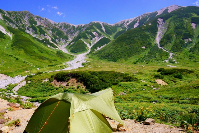 登山用テントは、遠くからでも見つけやすいようにオレンジや黄色のものが多く販売されています。