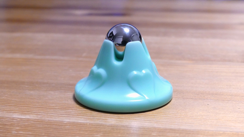 プラスチックの台座に直径22mmほどのステンレス球が乗っていてくるくると回転します。球は簡単には外れません。