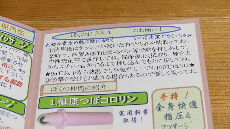 怪しい説明書はさておき、こちらがその足ツボ器です。商品名は「足つぼコロリン」。