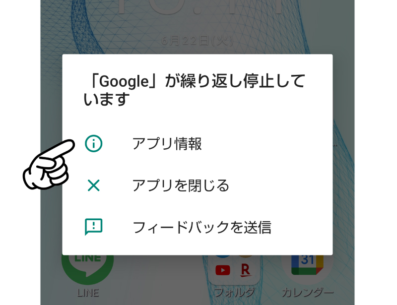 何度も表示が出てくるこの画面で「アプリ情報」をタップします。