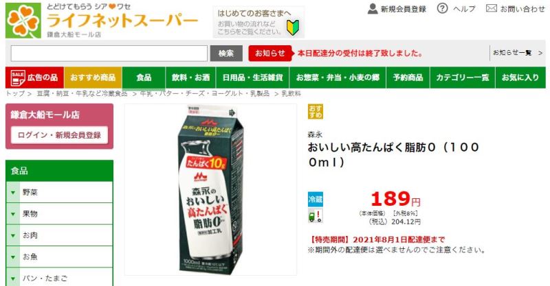 【リンク】ライフのネットスーパーで「おいしい高たんぱく脂肪0」を探す