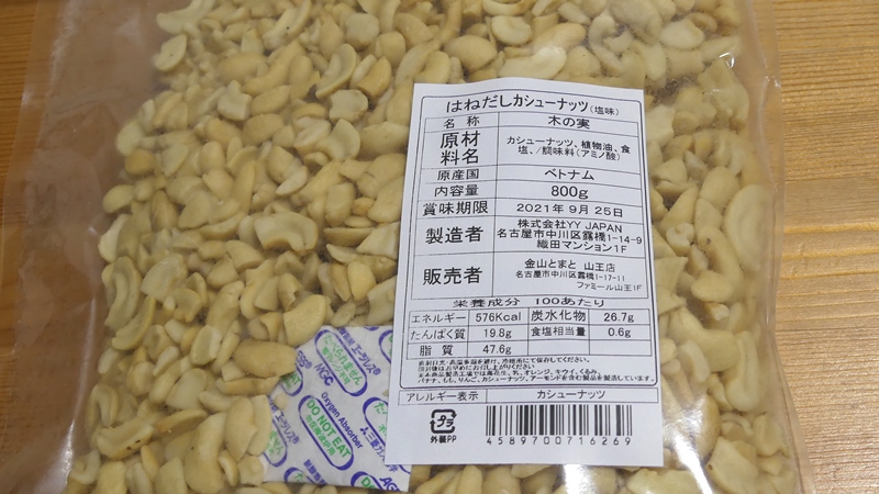 あと、ちょっと湿気を吸収してしまっているのか食感にカラッと感はありませんでした。素焼きカシューナッツに慣れていると違和感があるかもしれません。
