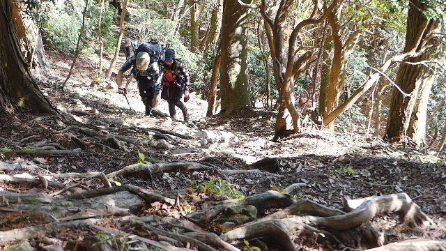 13番の横高山、16-1番の水井山の手前で2度の急坂があります。標高差は共に80m程度なのですが、なかなかの斜度でけっこうしんどいです。