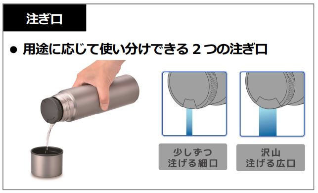 ・チタンは注ぎ口が2つあり「細口」での注湯が可能。