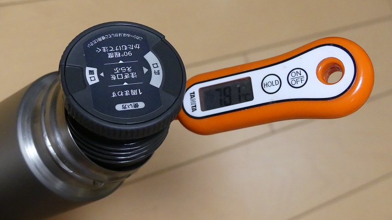 山専用ボトルは83℃前後だったので、やはり保温性能については少し低くなっています。