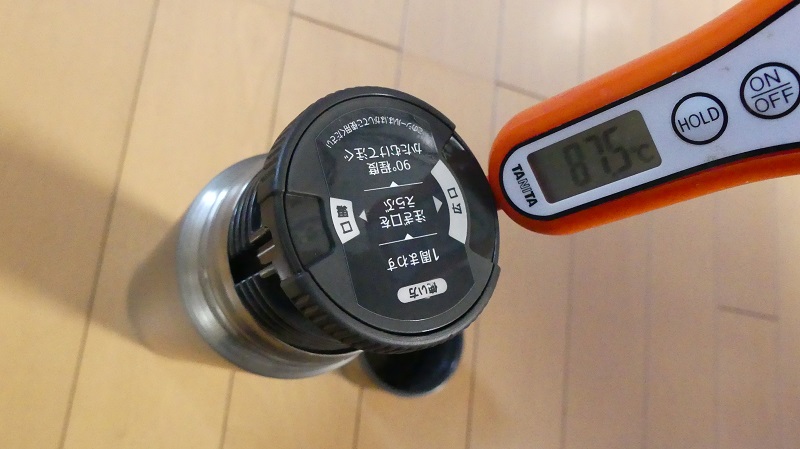 熱湯を入れて3時間後の湯温は87.5度でした。(室温23℃前後)