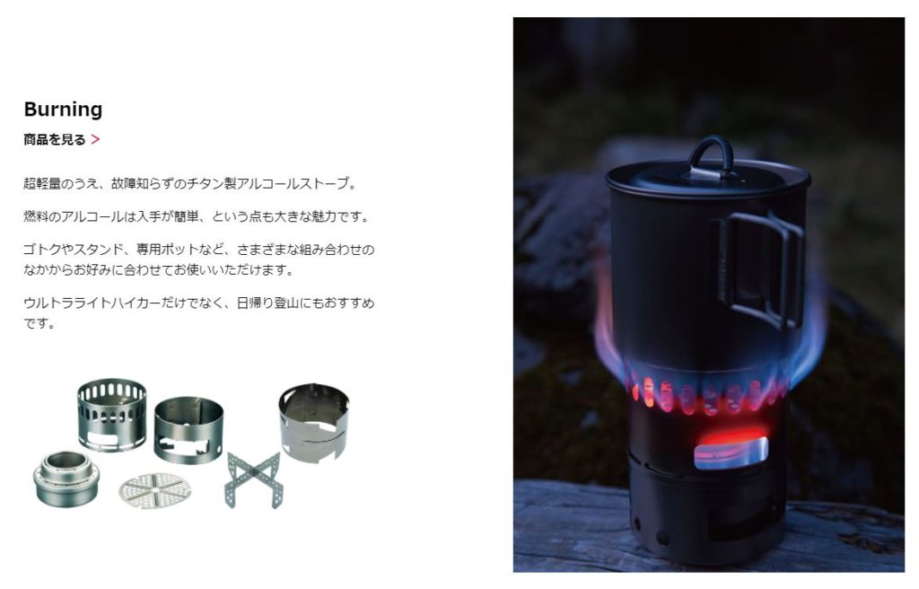 ちなみに低燃費クッキングシステムのジェットボイルは、アメリカ本国のサイトでは「ストーブ」、日本のサイトでは「バーナー」でした。どっちにするか悩んだんだろうなあという苦労が感じられます。