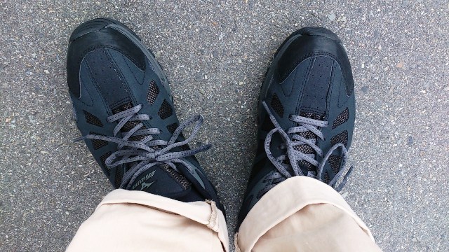 家の中を歩き回って、返品しない事を決意。軽登山のローカットはこれで行くことにしました。妻からはデザインが地味すぎると言われましたが、個人的にはデザインより履き心地重視なので満足しています。ヒザ痛持ち・腰痛持ちにはこのクッション性が有り難いんですよね。